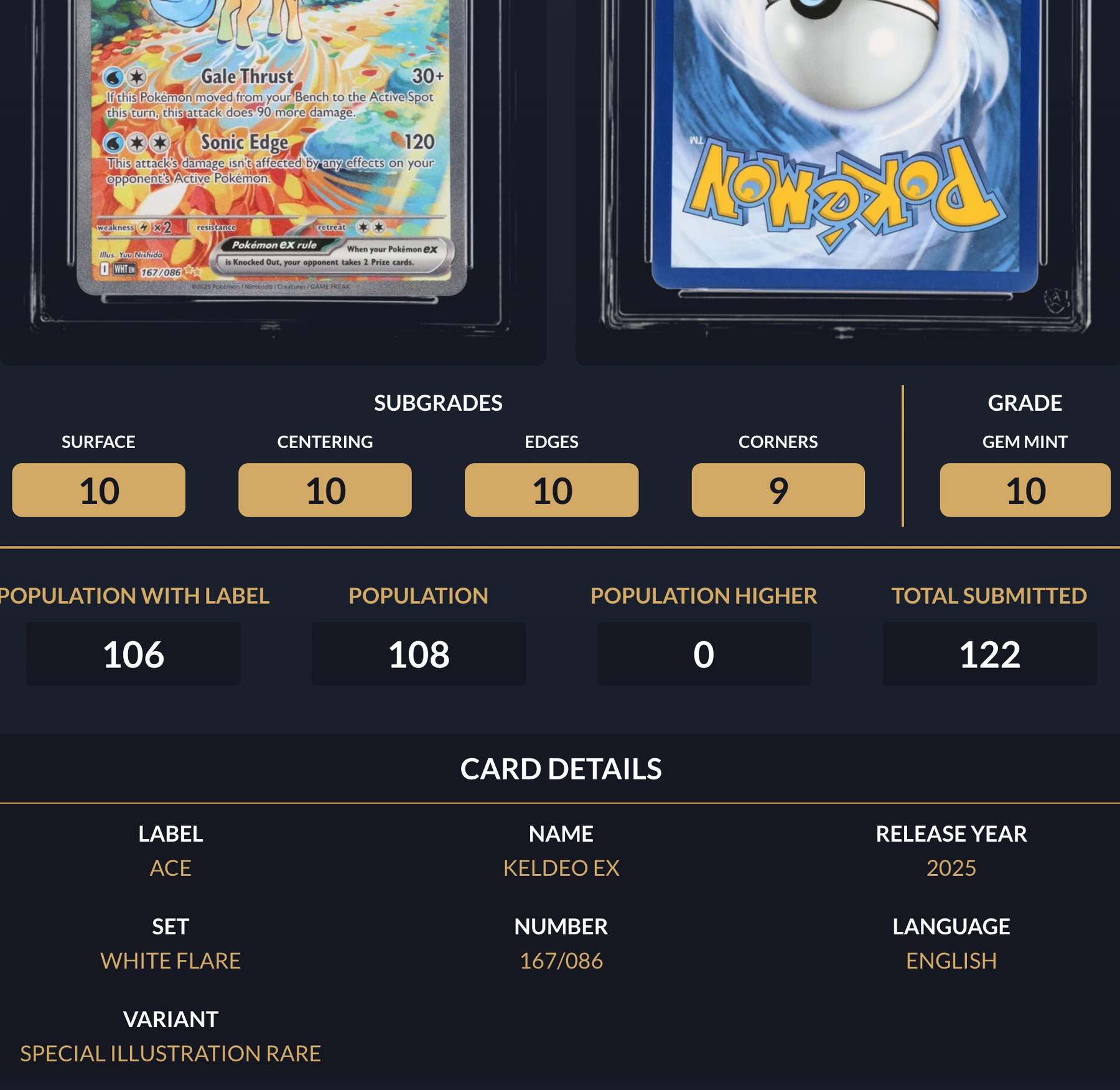 Pokemon Graded Card - Keldeo ex 167/086 - Ace Gem Mint 10 (477758)