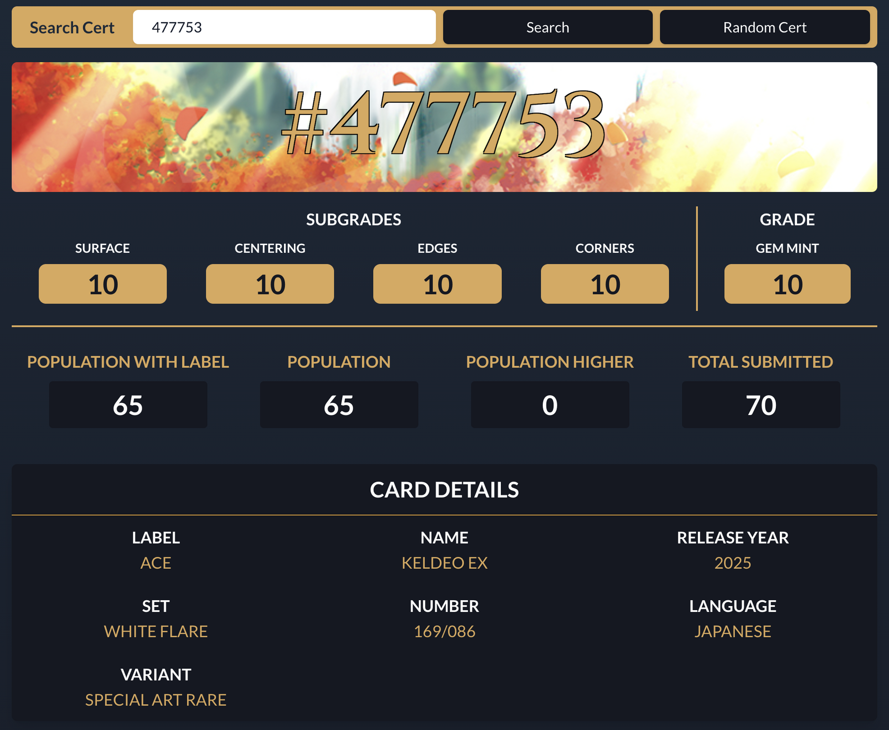 Pokemon Graded Card - Keldeo ex 169/086 (JP) - Ace Gem Mint 10 (477753)